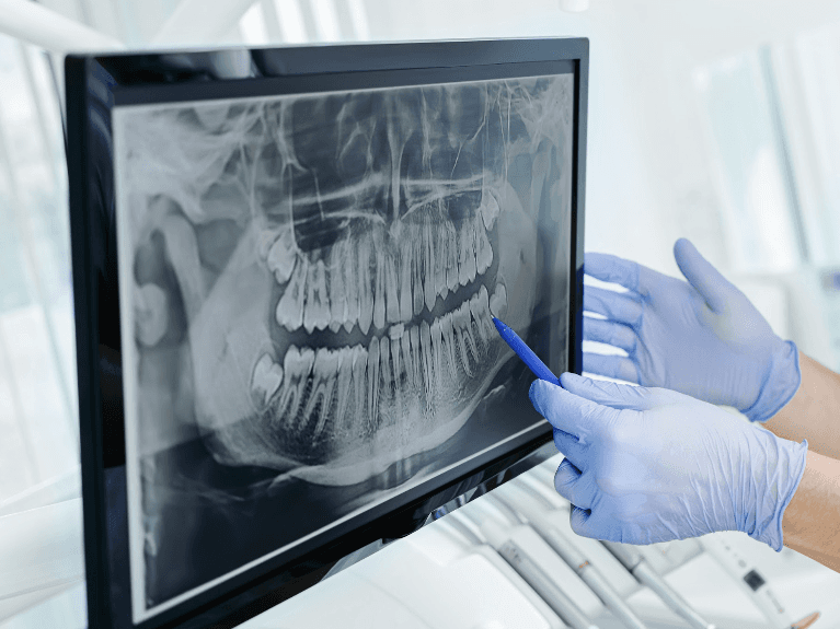 A panoramic x-ray gives us a full view of your mouth, jaw and surrounding structures in a single image.